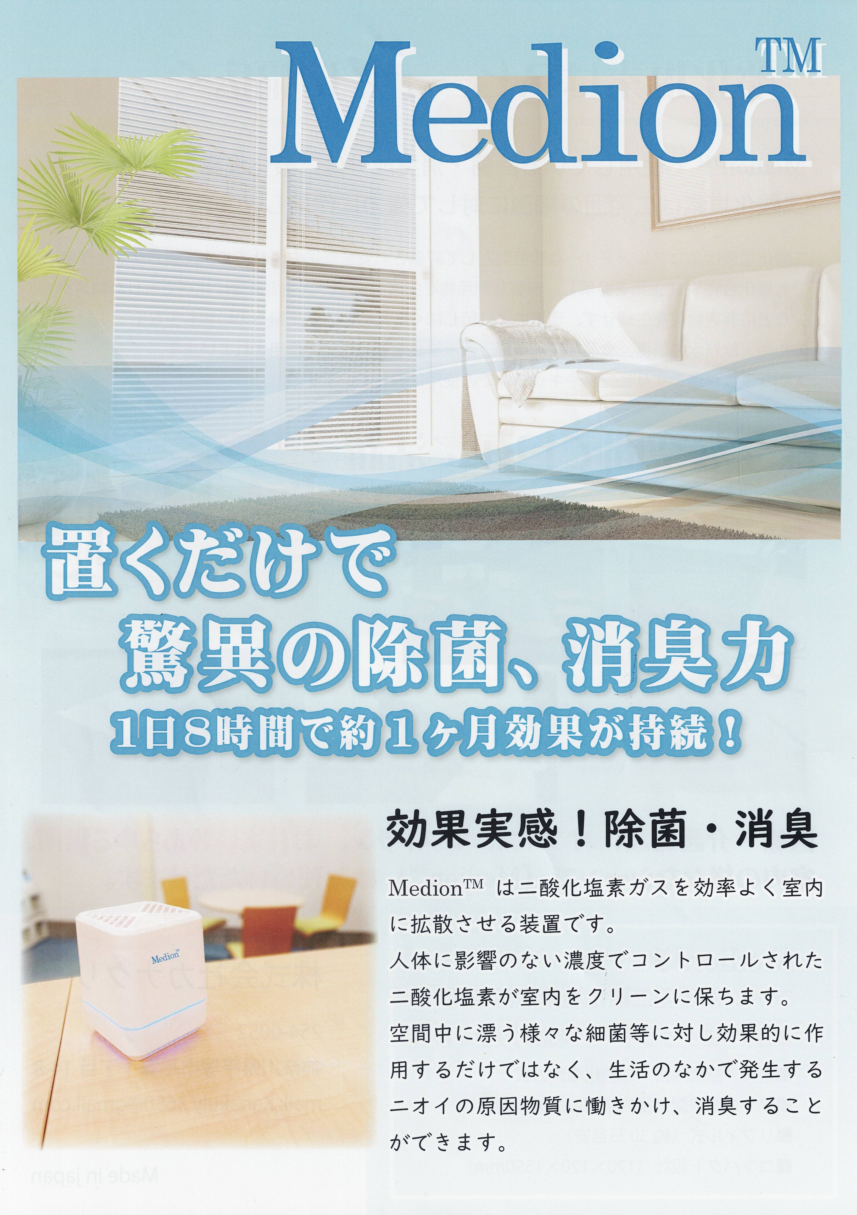 Medionで使用している除菌・消臭成分は二酸化塩素。二酸化塩素は広範囲の細菌に対して強力に作用します。